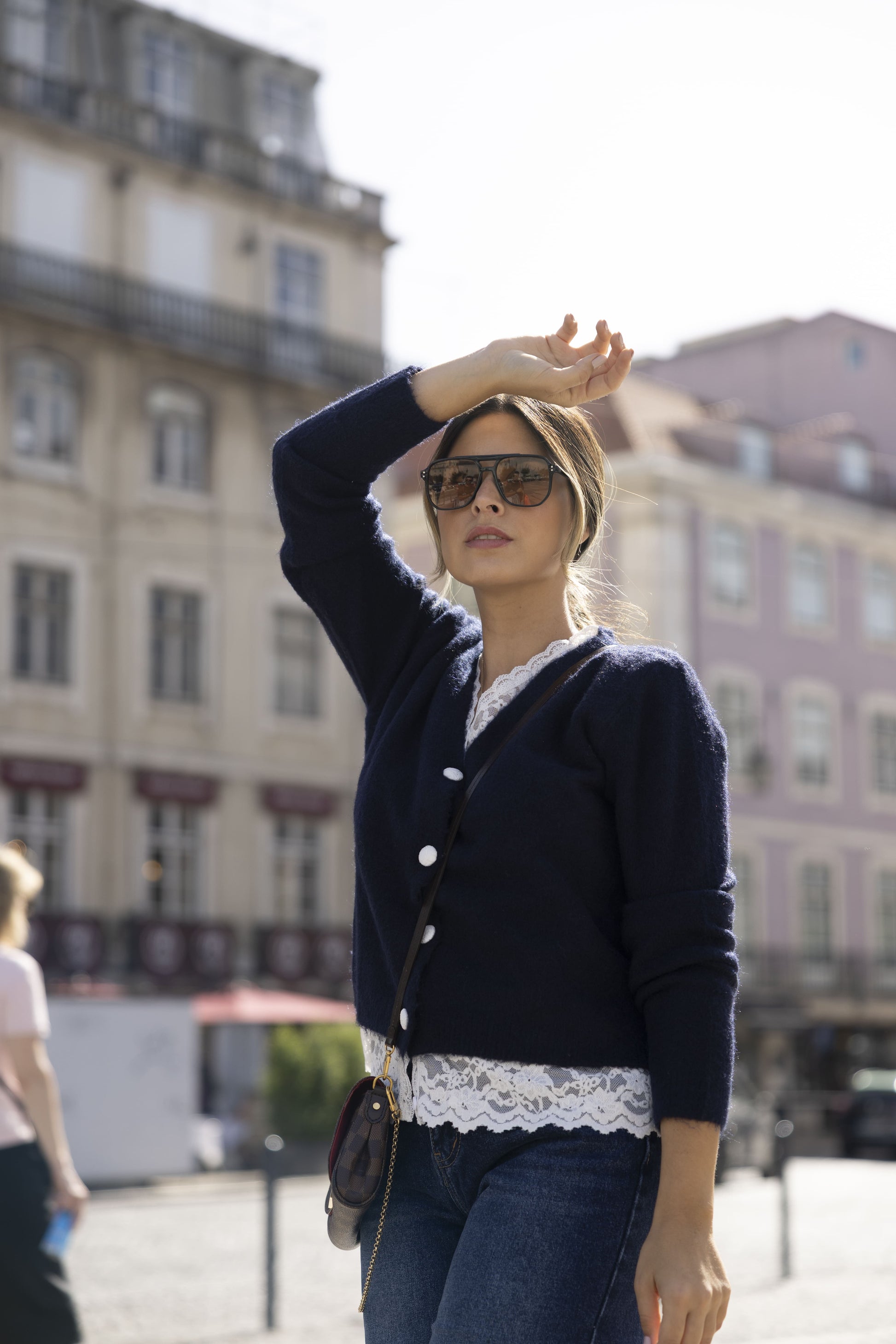 Usa o Casaco Amália com os jeans Tejo para um visual romântico e moderno.