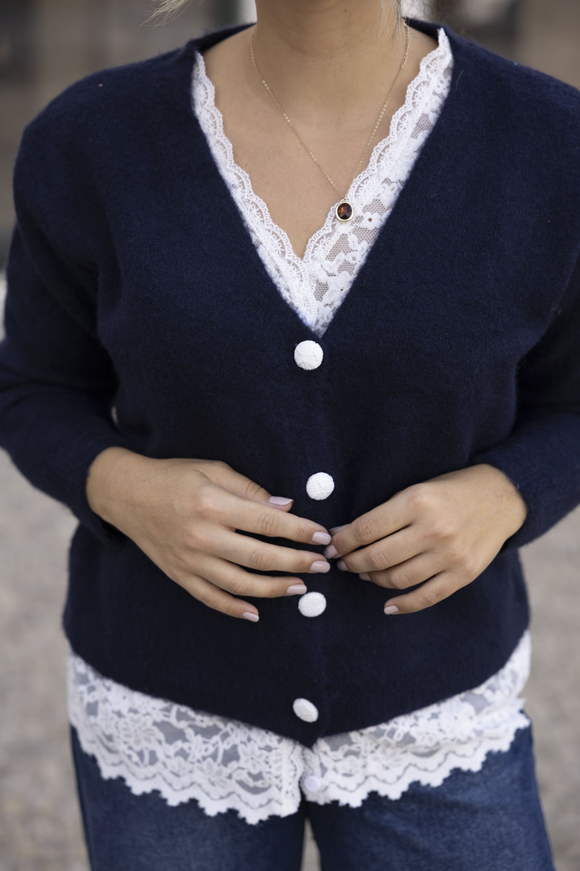 O Casaco Amália é uma peça especial que combina conforto e feminilidade. Produzido em malha suave, integra no seu interior uma renda delicada que se revela no decote e no fundo, criando o efeito de uma blusa romântica. Com um corte versátil e elegante, é perfeito para ser usado tanto em looks de dia como de noite. Uma peça única que valoriza os detalhes e que facilmente se torna protagonista em qualquer guarda-roupa.