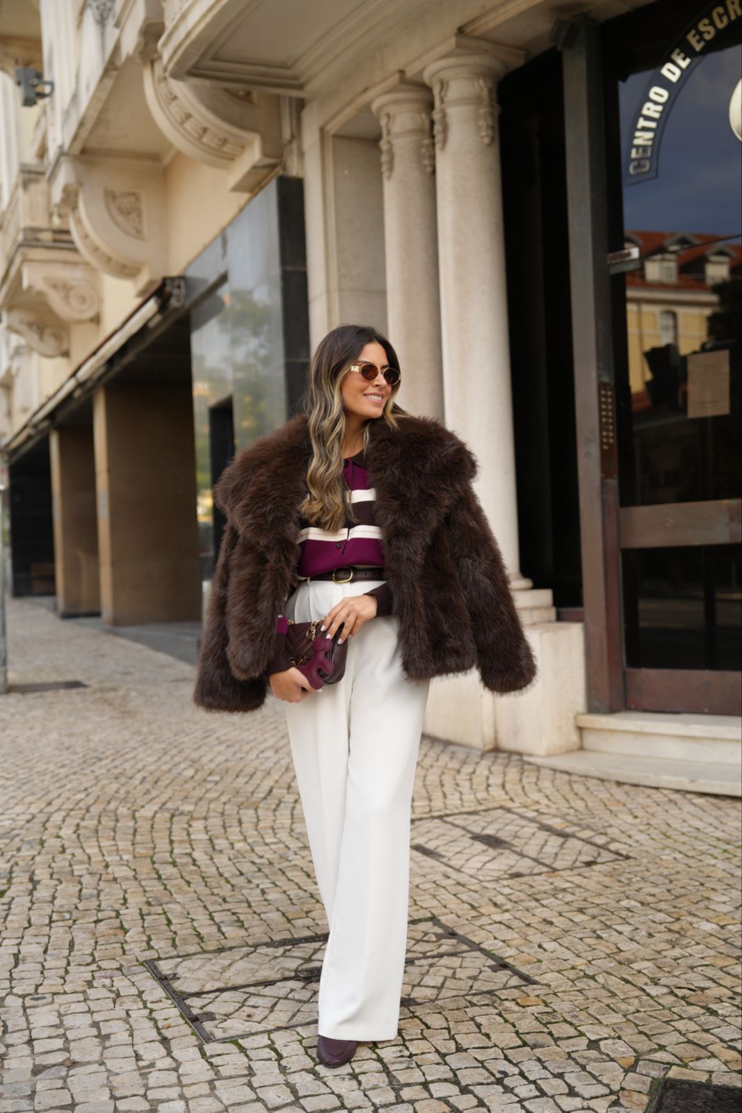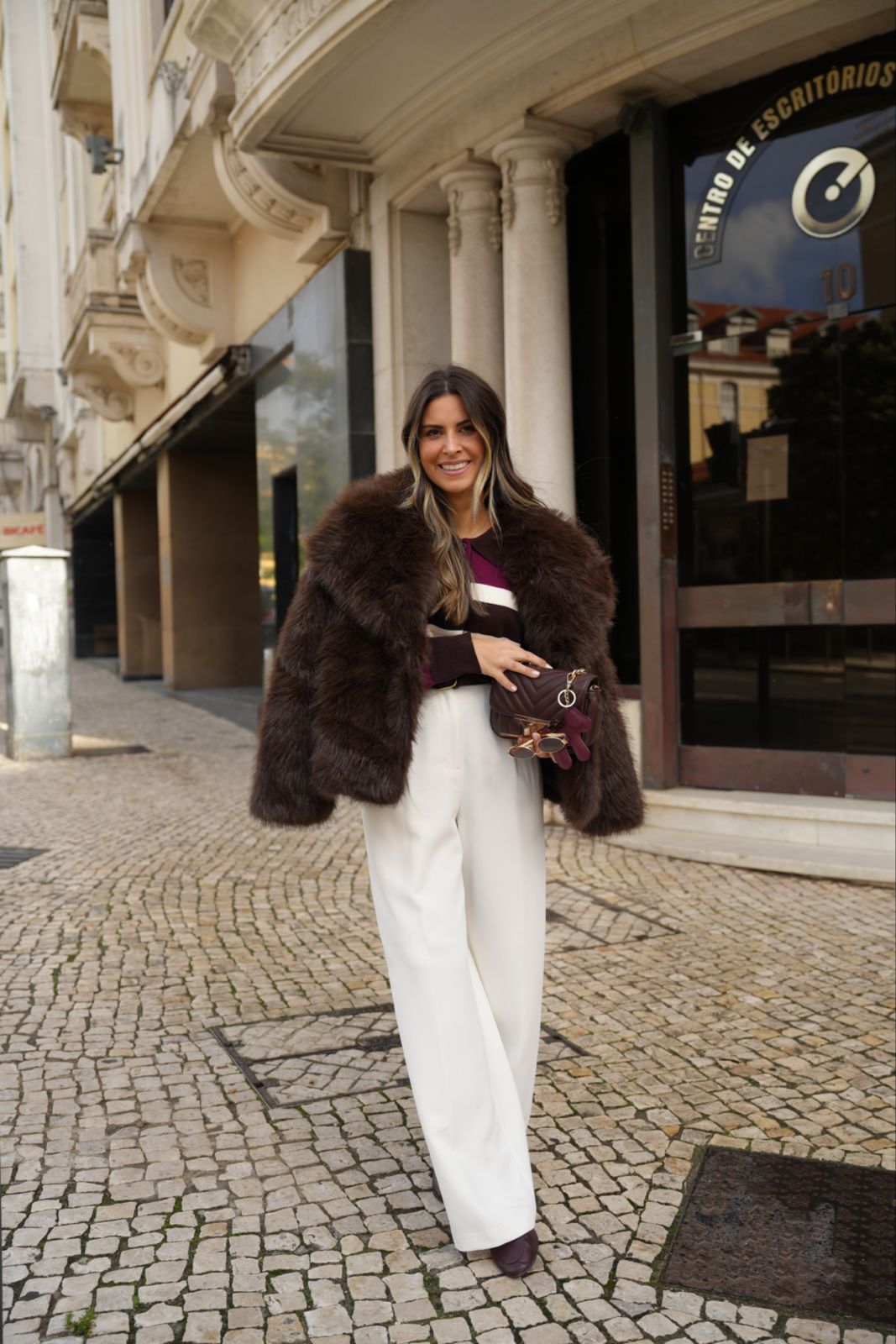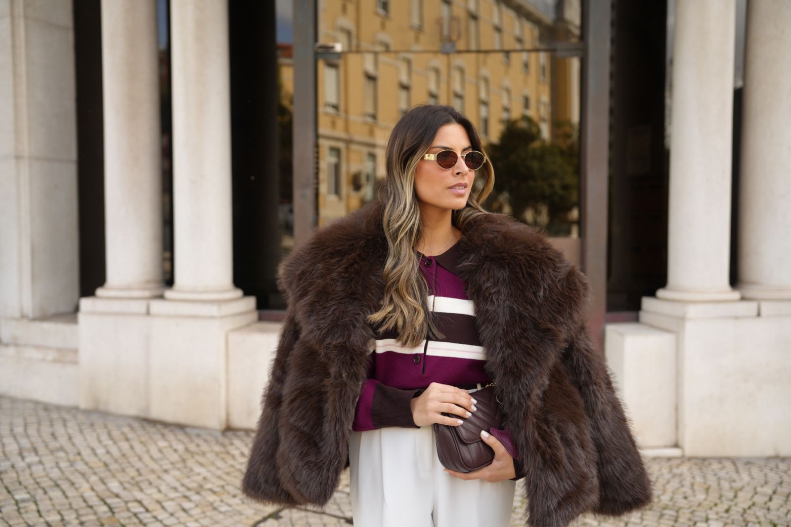 Casaco de pelo sintético macio com gola de lapela e bolsos laterais invisíveis. O toque perfeito de elegância citadina para dias frios.