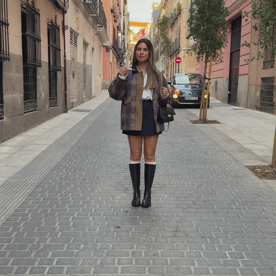 O casaco Checkmate combina o clássico padrão xadrez com detalhes modernos e uma gola em veludo contrastante. O corte reto, alcochoado por dentro e bolsos frontais tornam-no tão prático quanto elegante perfeito para dias frios com um toque sofisticado.