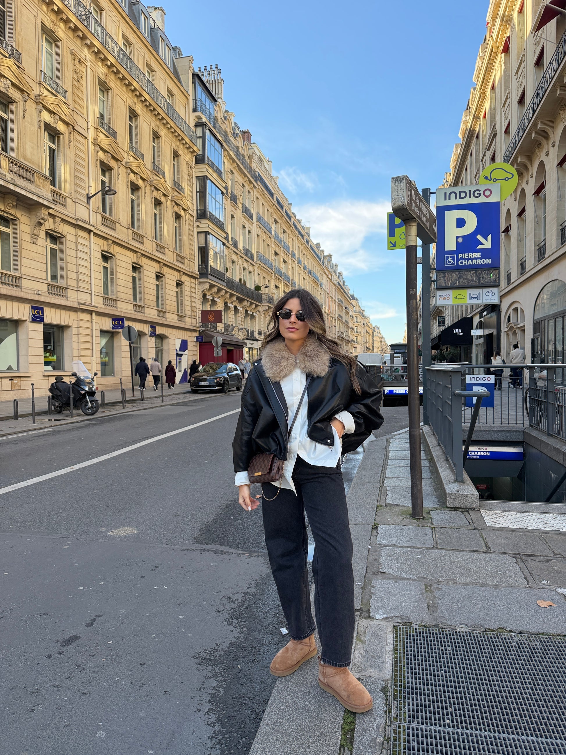 A silhueta alongada cria um efeito visual equilibrado e favorecedor, enquanto o denim estruturado garante conforto e durabilidade.